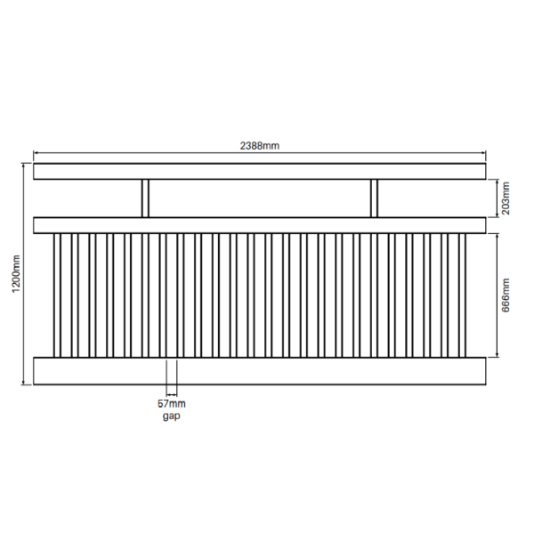 - 57mm gap between pickets.