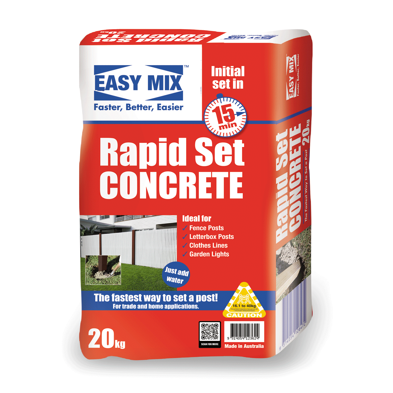 Because of its accelerated qualities, Easy Mix Concrete is ideal for pergola posts, fence posts, letterbox Posts, clotheslines, playground equipment and all other applications where a rapid setting concrete is required.