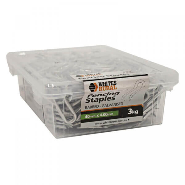 - Also available in 3kg are 30mm and 50mm barbed staples as well as 25mm plain staples